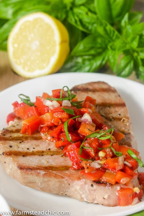 And if you make this amazing Paleo and Whole30 Grilled Ahi Tuna with Roasted Red Pepper Relish, be sure to tag me on Instagram as @farmsteadchic and use #farmsteadchic. I wanna see those pictures!