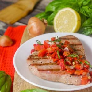 09 Aug Paleo and Whole30 Grilled Ahi Tuna with Roasted Red Pepper Relish