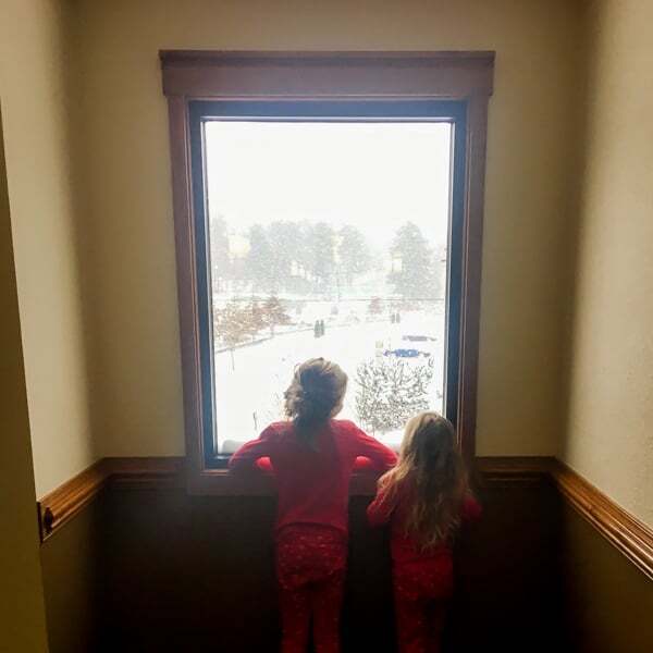 Here’s a cute picture of the girls looking out at the snow from our hotel.