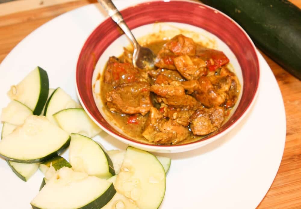I served it with a side of steamed zucchini seasoned with salt and pepper. It balanced out the spiciness of the chicken quite nicely.